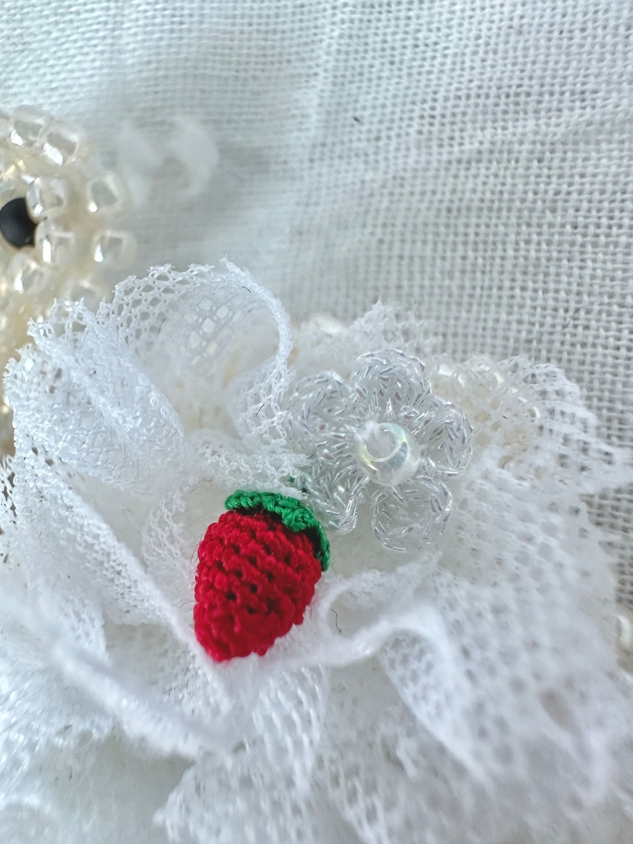 ベビースワンに小さな小さな編みいちご